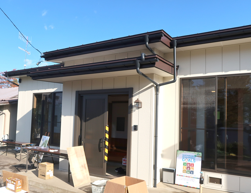 既存は屋根形状が複雑で雪が屋根にたまり、雪が道路に落ちる状態でした。勾配が緩い片流れ屋根にして、敷地内に雪が落ちるような流れになるようご提案致しました。