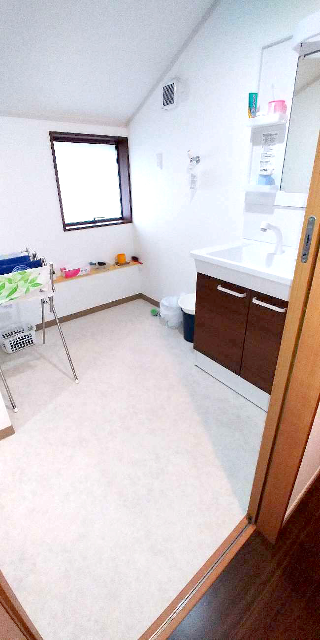 広めの脱衣室、洗面化粧台を設置したことで、生活の為の動線が重ならないようになりました。