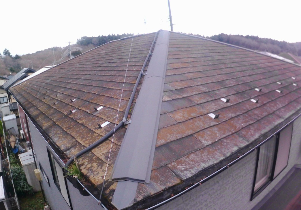屋根には苔が生えており、外壁は防水性がほとんど無くなっている状態でした。 塗装することで防水性が向上し、濃い色を採用したことにより、重厚感と高級感のある仕上がりとなりました。