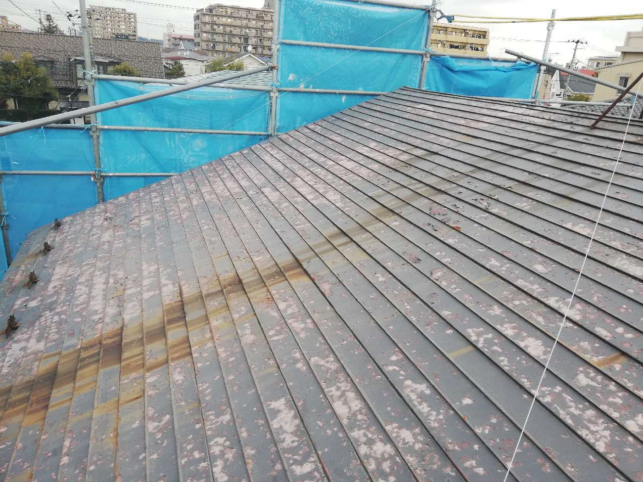 AT式トタン屋根で、前回塗装の塗膜も剥がれ錆も出ている状態でした。
