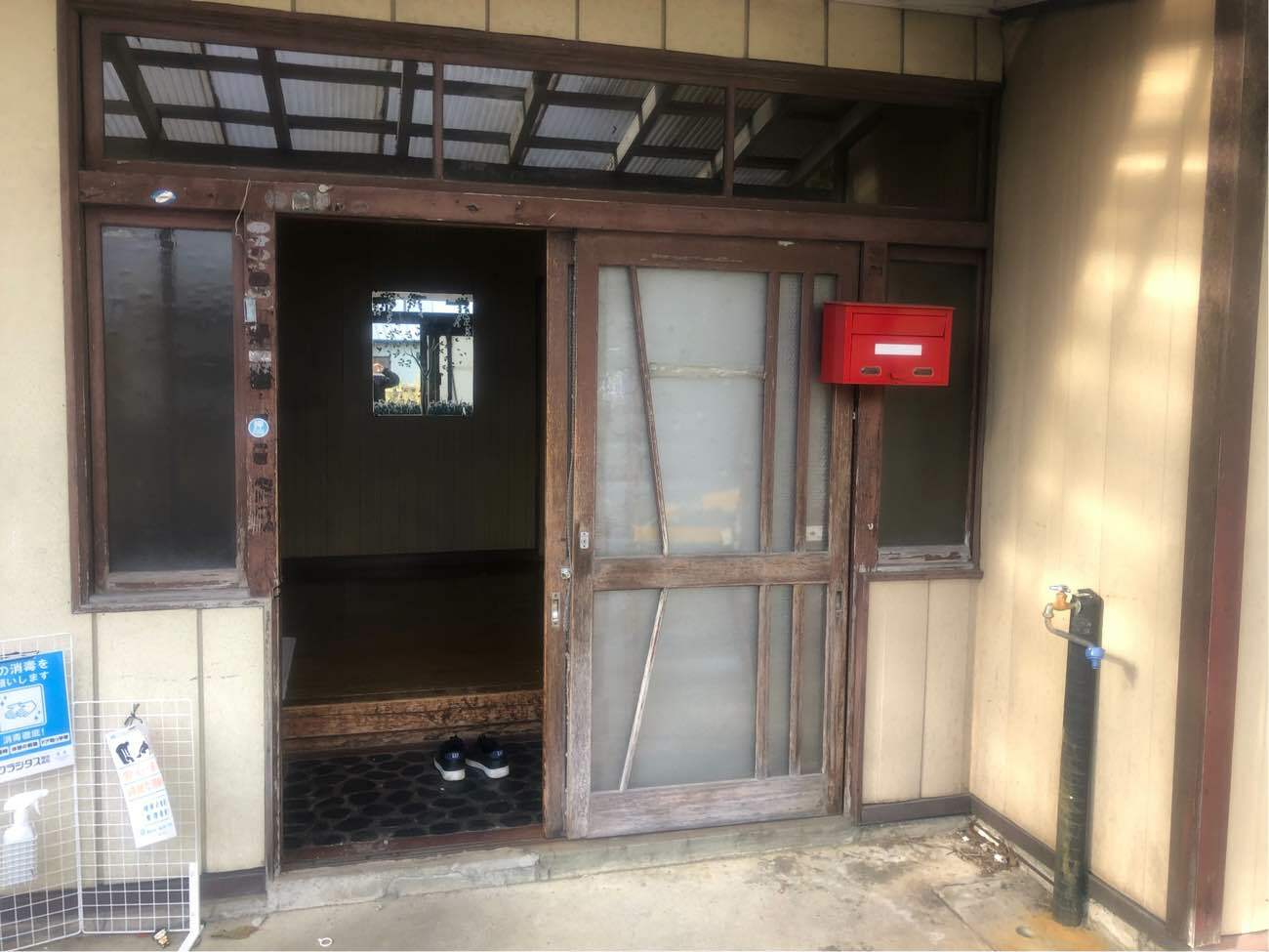 木建具で鍵が壊れていました。 また、隙間もあり寒い玄関でした。