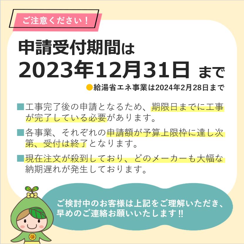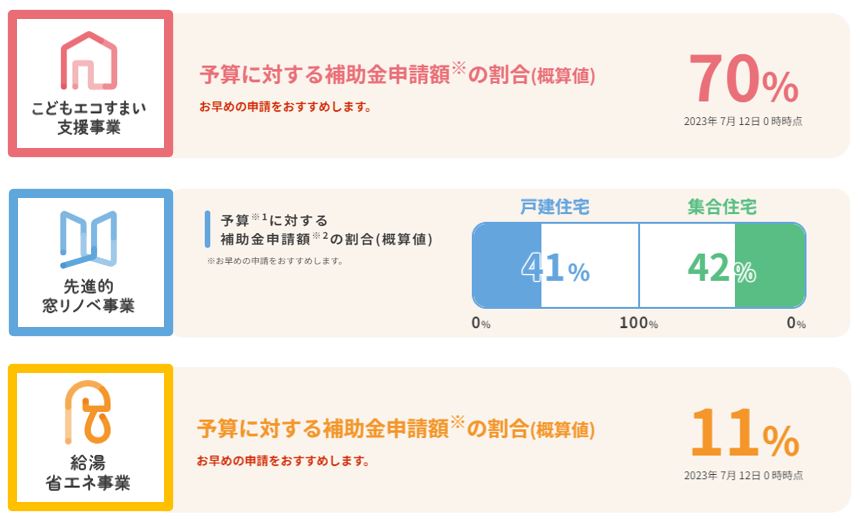 「住宅省エネ2023キャンペーン」の予算に対する補助金の申請額についてUPしています。