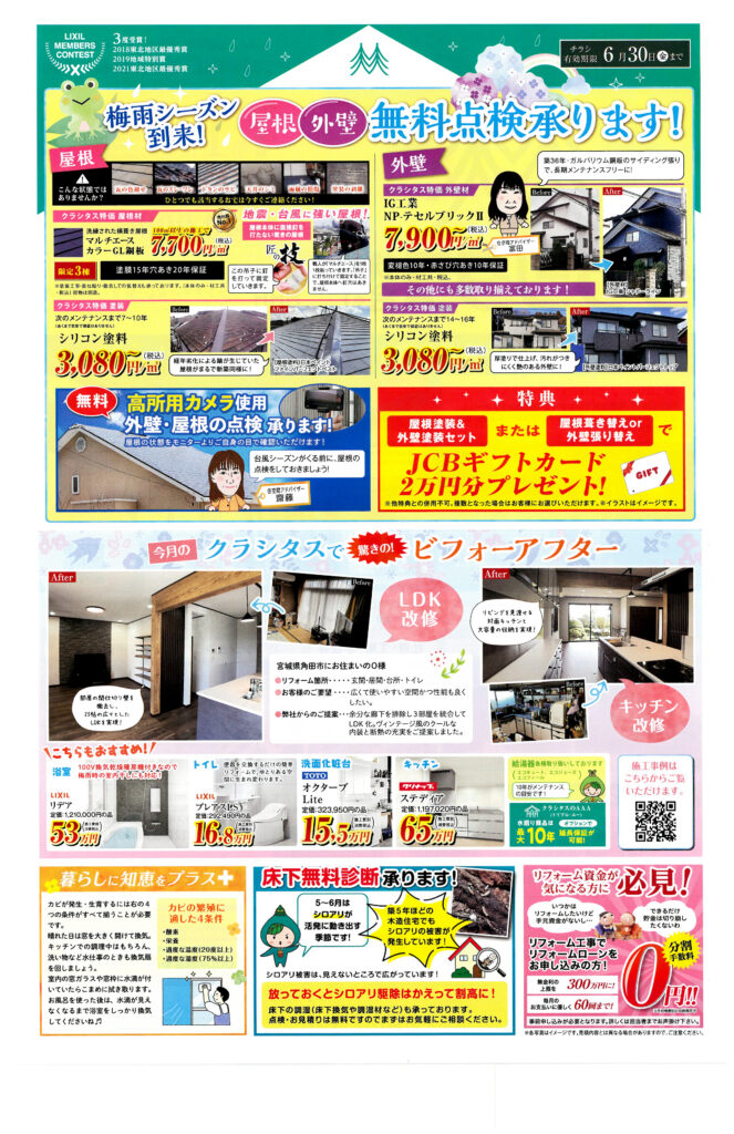 今月は梅雨シーズンに向けたオススメリフォームをご紹介しております。