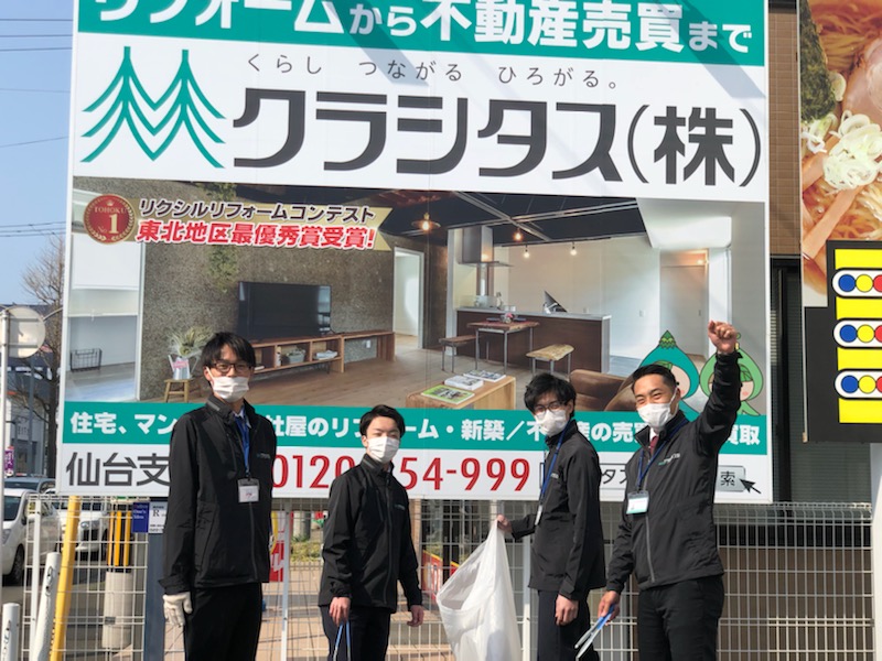 宮城・山形の事業所付近の道路清掃を、スタッフで行いました。
