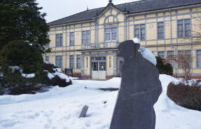 モニュメントが見つめる宮沢賢治ゆかりの学校