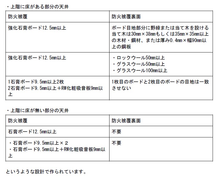 暑さ12mm以上の石膏ボード張り、厚さ9mm以上の石膏ボード2枚張りなど